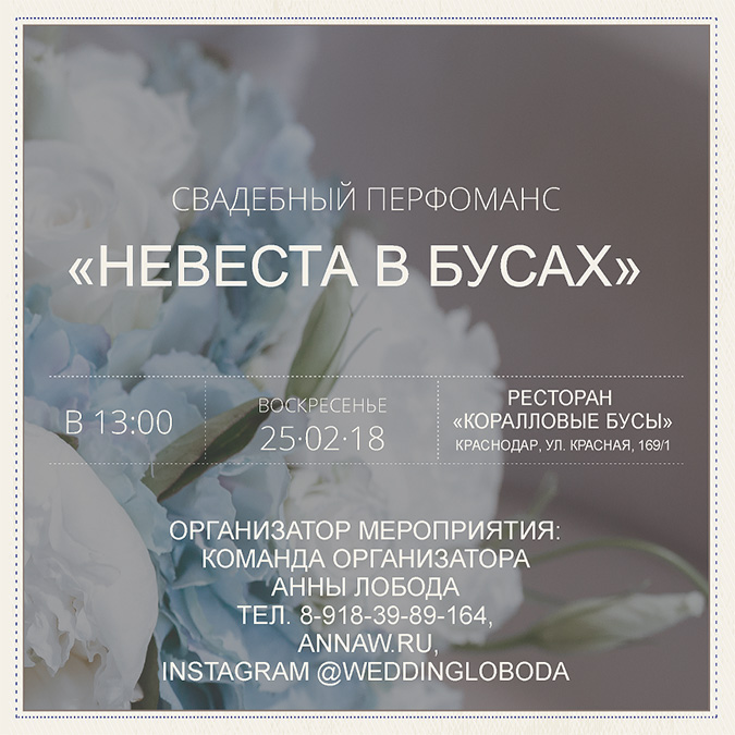 Свадебный день - это целое действие, это целый роман, где главные герои двое влюбленных. Имеющее свою драматургию, свою историю. И от того, как мы ее с вами расскажем, зависит впечатление гостей, ваши воспоминания, эмоции.